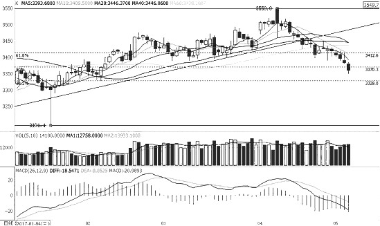 摘要: IF跌勢流暢IF主力合約近期下降趨勢明顯,均線系統(tǒng)拐頭向下,重要壓力區(qū)間下降至3400—3450點,壓力沉重。MACD指標(biāo)快慢線于0軸之下運(yùn)行,斜率平穩(wěn),綠柱放大,跌勢流暢。操作上,以3400點為防守