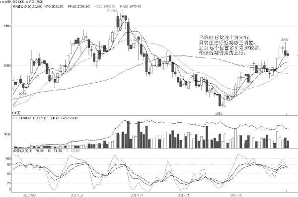 KDJ指標(biāo)繼續(xù)處于多頭區(qū)域運行,多頭仍占據(jù)主導(dǎo),預(yù)計后期期價將振蕩上行。操作上逢低買多為主。 (肖永志)