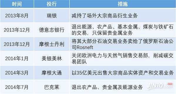 投行本身的操控行為也是監(jiān)管加強(qiáng)的原因。2012年,巴克萊被指控涉嫌操縱美國西部四州現(xiàn)貨電力市場,最終被判支付4.53億美元的民事賠償;2013年,摩根大通被質(zhì)疑通過控制倉儲和自營業(yè)務(wù)來推高金屬價(jià)格,最終以支付4.1億美元的罰金為代價(jià)與起訴方形成和解。天價(jià)罰單極大地打擊了投行繼續(xù)從事大宗商品現(xiàn)貨業(yè)務(wù)的積極性,大摩、小摩、巴克萊、德銀等投行都在逐漸退出大宗商品市場,甚至完全砍掉了大宗商品的敞口。