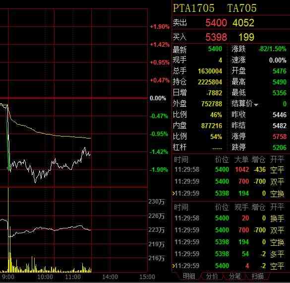 期貨消息 周三(1月4日)大宗商品漲跌分化,三大油脂領跌,能化品種走弱,PTA、瀝青開盤跳水。截止中午收盤,鄭油跌1.74%、豆油跌1.51%、PTA跌1.5%、棕櫚跌1.47%、瀝青跌1.41%、滬鎳跌1.39%、滬銅跌1.35%、橡膠跌1.15%;漲幅方面,玉米漲1.05%、白糖漲1.05%、滬銀漲0.98%、螺紋漲0.93%、PVC漲0.91%。