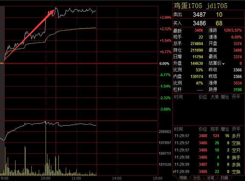 期貨消息 周三(1月11日)大宗商品全線上漲,黑色系維持強(qiáng)勢,農(nóng)產(chǎn)品開啟反彈,雞蛋盤中快速拉漲。截止中午收盤,雞蛋漲3.57%、鐵礦石漲2.84%、滬銅漲2.75%、螺紋漲2.23%、菜粕漲2.18%、豆粕漲2.13%、焦炭漲2.09%、熱卷漲2.01%,滬鋁、橡膠、玻璃、棕櫚、白糖、瀝青、滬鋅、豆油、滬鉛、PTA、鄭油、滬鎳漲幅超1%。