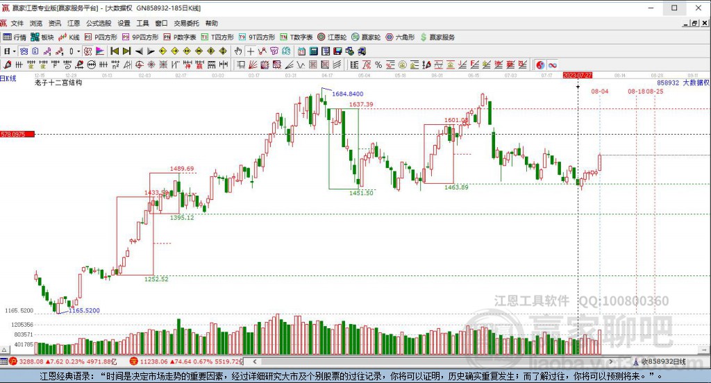 依據(jù)贏家江恩趨勢工具技術(shù)分析得出,目前處于短線上漲趨勢中, 依據(jù)贏家江恩價(jià)格工具得出:當(dāng)前支撐位:,當(dāng)前阻力位:,由贏家江恩時(shí)間周期工具展示得出:下一個(gè)時(shí)間窗口為。
