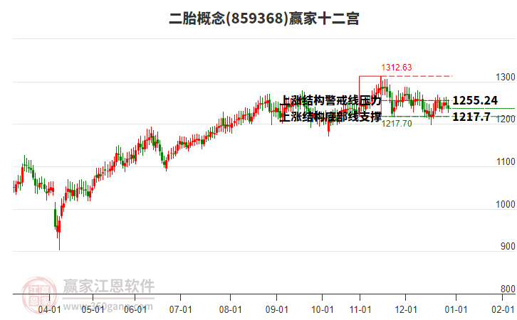 概念自近期高點1327.69跌至今日1270.0點,共下跌57.69點,跌幅4.54%,當前概念處于2025年11月14日形成的上漲結(jié)構(gòu)頂部線與警戒線之間。依據(jù)贏家十二宮多空能量守恒規(guī)則,若多方能量再度聚集發(fā)力上攻,有望再度上攻關(guān)注結(jié)構(gòu)頂部線1312.63點尋找平衡位;若跌破警戒線,空方繼續(xù)主導(dǎo),則將進一步下探結(jié)構(gòu)底部線1217.7點尋找平衡位。