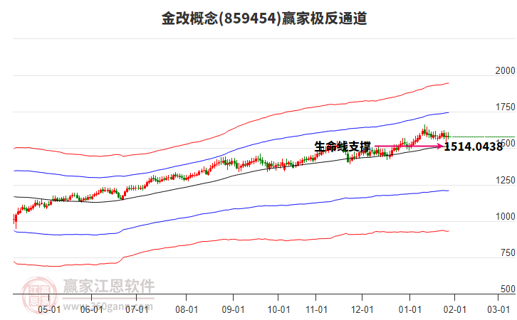 當(dāng)前概念處于生命線上強(qiáng)勢(shì)通道,當(dāng)天收盤價(jià)1569.91,自近期通道內(nèi)高點(diǎn)1662.45持續(xù)下跌至今日,到達(dá)生命線1517.3366點(diǎn)上方,短期關(guān)注此線支撐,如支撐不破,保持在強(qiáng)勢(shì)通道內(nèi),波段繼續(xù)看多,有望再次挑戰(zhàn)強(qiáng)勢(shì)通道線1749.2862點(diǎn)。若跌破生命線1517.3366,進(jìn)入弱勢(shì)通道,打開下跌空間。