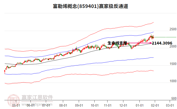 當(dāng)前概念處于生命線上強(qiáng)勢通道,今日收盤價(jià)2239.32,自近期通道內(nèi)高點(diǎn)2389.81持續(xù)下跌至今日,到達(dá)生命線2153.8038點(diǎn)上方,短期關(guān)注此線支撐,如支撐不破,保持在強(qiáng)勢通道內(nèi),波段繼續(xù)看多,有望再次挑戰(zhàn)強(qiáng)勢通道線2474.1532點(diǎn)。若跌破生命線2153.8038,進(jìn)入弱勢通道,打開下跌空間。