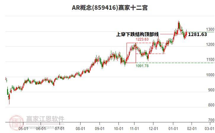 今日概念跌破上漲結(jié)構(gòu)頂部線1223.63點(diǎn),概念自前方高點(diǎn)1月12日1370.16點(diǎn)持續(xù)下跌15日跌幅14.29%,依據(jù)贏家十二宮結(jié)構(gòu)規(guī)則,上漲結(jié)構(gòu)突破頂部線后再次跌落至頂部線,多空能量再次在頂部線尋找平衡。若確認(rèn)跌破頂部線,出現(xiàn)空方能量守恒狀態(tài),向下警戒線1152.01點(diǎn)尋找多空能量平衡位。