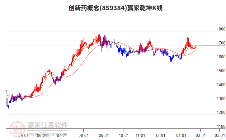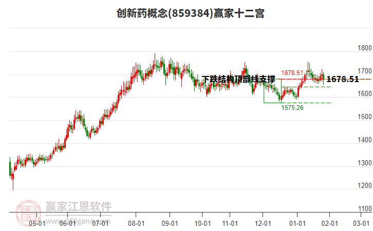 當天概念下穿前期2025年12月17日形成的下跌結(jié)構(gòu)警戒線1644.55點,本輪下跌自近期高點1月13日,持續(xù)13日下跌至今日1640.13,跌幅6.92%。依據(jù)贏家十二宮多空能量守恒規(guī)則,下跌結(jié)構(gòu)警戒線是多空能量平衡爭奪點,突破或跌破往往意味著平衡打破。若概念再次收復站穩(wěn)警戒線位置,多方能量有望再次主導進行上攻,將在頂部線1678.51點尋找多空能量平衡位。如概念不能收復該警戒線1644.55,則概念將會下探至底部線1575.26點再次尋找底部多空能量平衡位。
