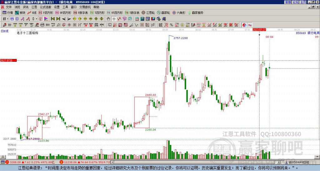 風(fēng)險提示:本頁面利用《贏家江恩軟件》《贏家十二宮軟件》系列工具客觀數(shù)據(jù)進(jìn)行數(shù)據(jù)模型運(yùn)算,系軟件圖表語言,由此得出的相關(guān)結(jié)論,不供參考,不構(gòu)成任何投資建議。贏家財富網(wǎng)版權(quán)所有,轉(zhuǎn)載請注明出處。