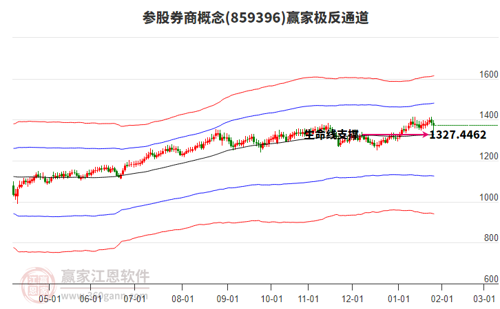當(dāng)前概念處于生命線上強(qiáng)勢(shì)通道,當(dāng)天收盤價(jià)1340.62,自近期通道內(nèi)高點(diǎn)1415.7持續(xù)下跌至今日,到達(dá)生命線1331.6001點(diǎn)上方,短期關(guān)注此線支撐,如支撐不破,保持在強(qiáng)勢(shì)通道內(nèi),波段繼續(xù)看多,有望再次挑戰(zhàn)強(qiáng)勢(shì)通道線1487.3635點(diǎn)。若跌破生命線1331.6001,進(jìn)入弱勢(shì)通道,打開(kāi)下跌空間。