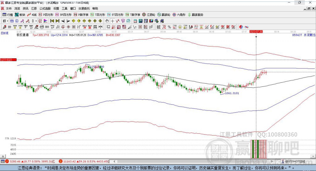 依據(jù)贏家江恩乾坤K線工具展示,本月概念以陽線收盤,目前K線處于紅色區(qū)域(上漲趨勢),位于關(guān)注線上方,依據(jù)贏家江恩乾坤K線多空模型,目前多頭出局線對當前概念形成支撐,短期看多。后市如若概念跌破多頭出局線,則可能形成短期回調(diào)。