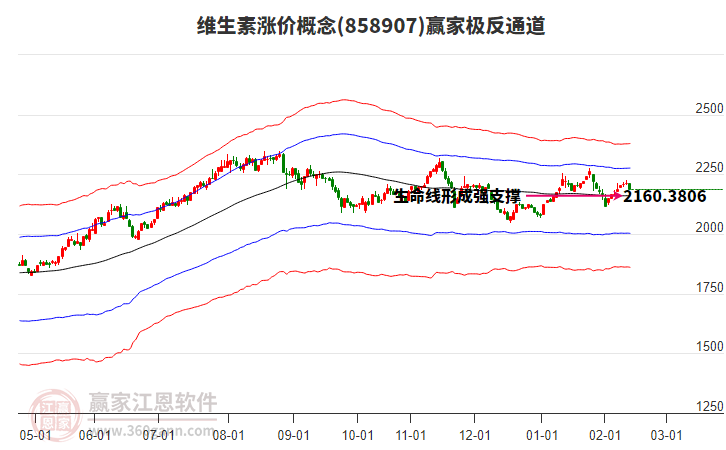 當(dāng)前概念處于生命線上強(qiáng)勢(shì)通道,今日收盤(pán)價(jià)2170.01,自近期通道內(nèi)高點(diǎn)2227.39持續(xù)下跌至今日,到達(dá)生命線2160.1017點(diǎn)上方,短期關(guān)注此線支撐,如支撐不破,保持在強(qiáng)勢(shì)通道內(nèi),波段繼續(xù)看多,有望再次挑戰(zhàn)強(qiáng)勢(shì)通道線2275.9037點(diǎn)。若跌破生命線2160.1017,進(jìn)入弱勢(shì)通道,打開(kāi)下跌空間。