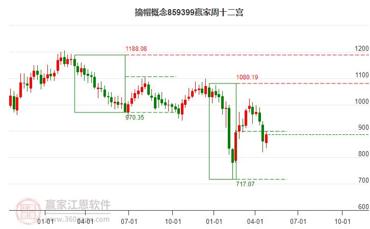 本周K線以陰線收盤,收盤價(jià)1374.31,概念自12月19日低點(diǎn)1215.38展開上攻,持續(xù)6周,抵達(dá)強(qiáng)勢通道線1566.6095點(diǎn)壓力位附近受阻,如能有效突破強(qiáng)勢通道線,則有望繼續(xù)上攻強(qiáng)勢外軌線1912.0669點(diǎn),若不能突破則將回探生命線1180.9586點(diǎn)附近尋找支撐。極反通道規(guī)則顯示,一線受阻,回調(diào)一線。