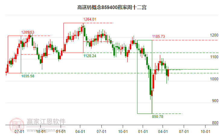 概念從近期低點4月11日1095.12點,漲至目前受江恩輪三角形1539.5點壓制,目前處于1095.12-1555.35箱體區(qū)間。依據(jù)贏家江恩輪中輪規(guī)則,市場中三分位、四分位是一切市場周期運行的基礎(chǔ),若能突破站穩(wěn)三角形1539.5,有望持續(xù)上漲至四方形壓力位1573.93點。若向下跌破四方形1470.63位置,則關(guān)注三角形關(guān)鍵支撐位1401.75點。