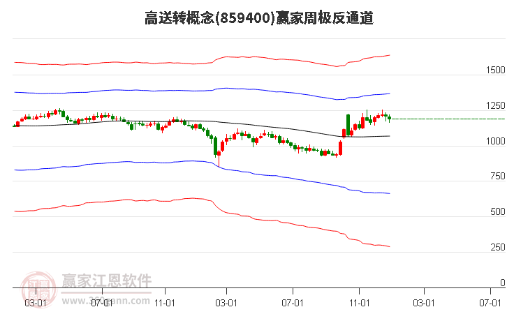 本周K線以陰線收盤,收盤價1507.97,概念自4月11日低點1095.12展開上攻,持續(xù)42周,抵達強勢通道線1557.8633點壓力位附近受阻,如能有效突破強勢通道線,將打開上行空間,進入超強通道,若不能突破則將回探生命線1322.3706點附近尋找支撐。極反通道規(guī)則顯示,一線受阻,回調(diào)一線。