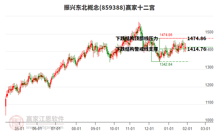 今日概念處于2025年12月17日形成的下跌結(jié)構(gòu)底部線1342.84點(diǎn)上方區(qū)域,自近期高點(diǎn)1467.15跌至今日1370.3,跌幅7.07%。依據(jù)贏家十二宮多空能量守恒規(guī)則,若概念不能有效站穩(wěn)底部線,下方多空能量平衡位需結(jié)合前方贏家十二宮結(jié)構(gòu)尋找。