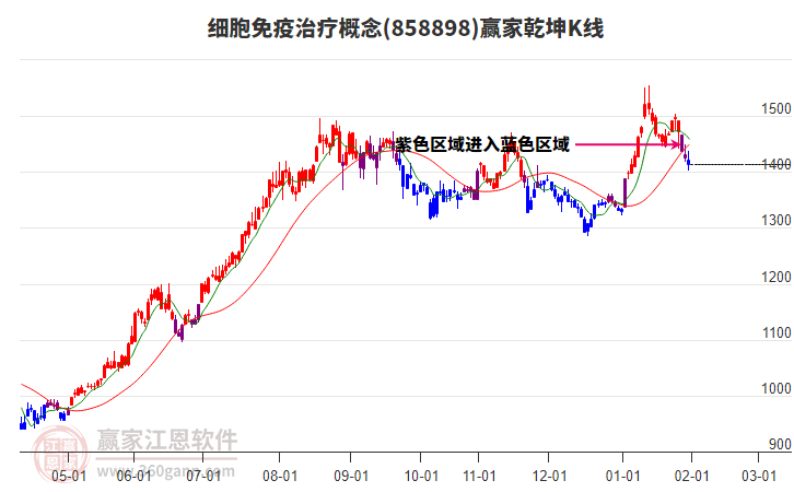目前概念處于藍色區(qū)域(下跌趨勢),今日概念以上影中陰線收盤,K線收于出局線下方。近期前方高點1月26日1503.62點,如短期有效突破前期高點1503.62,有望走出震蕩區(qū)域,如未能突破,繼續(xù)延續(xù)箱體震蕩。
