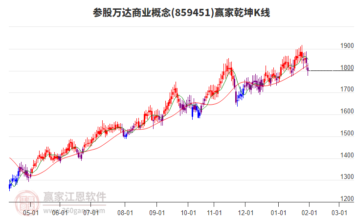 2月2日概念收1755.3點,大幅下跌2.53%,跌破贏家江恩輪中輪四方形重要支撐位置1769.88點。依據贏家江恩輪中輪規(guī)則,市場中圓形、三角形、四方形是一切市場周期運行的基礎。概念若不能快速收復四方形關鍵位置,則順時針回看三角形關鍵位置1645.71點,若能再次站穩(wěn)四方形關鍵位置,則逆時針上看三角形關鍵位置1811.27點。