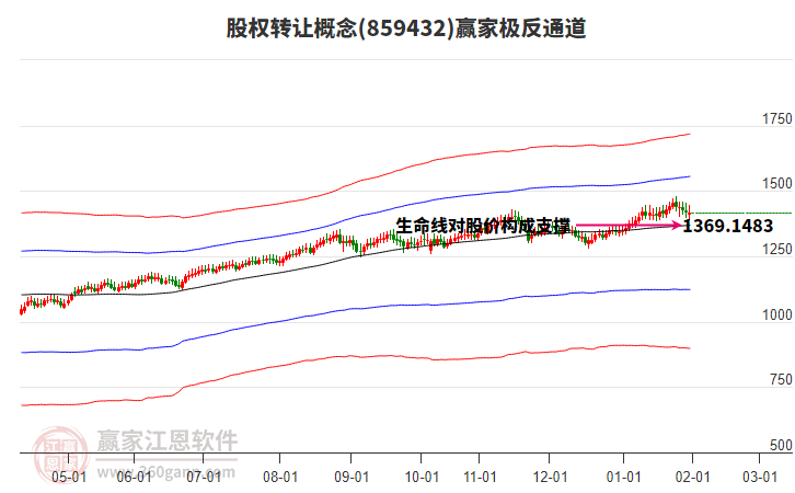 當(dāng)前概念處于生命線上強(qiáng)勢(shì)通道,目前收盤價(jià)1394.6,自近期通道內(nèi)高點(diǎn)1480.67持續(xù)下跌至今日,到達(dá)生命線1370.6423點(diǎn)上方,短期關(guān)注此線支撐,如支撐不破,保持在強(qiáng)勢(shì)通道內(nèi),波段繼續(xù)看多,有望再次挑戰(zhàn)強(qiáng)勢(shì)通道線1556.7389點(diǎn)。若跌破生命線1370.6423,進(jìn)入弱勢(shì)通道,打開(kāi)下跌空間。