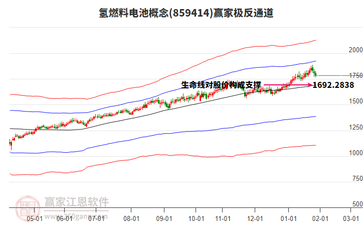 當(dāng)前概念處于生命線(xiàn)上強(qiáng)勢(shì)通道,當(dāng)天收盤(pán)價(jià)1756.94,自近期通道內(nèi)高點(diǎn)1888.56持續(xù)下跌至今日,到達(dá)生命線(xiàn)1696.7404點(diǎn)上方,短期關(guān)注此線(xiàn)支撐,如支撐不破,保持在強(qiáng)勢(shì)通道內(nèi),波段繼續(xù)看多,有望再次挑戰(zhàn)強(qiáng)勢(shì)通道線(xiàn)1931.0693點(diǎn)。若跌破生命線(xiàn)1696.7404,進(jìn)入弱勢(shì)通道,打開(kāi)下跌空間。
