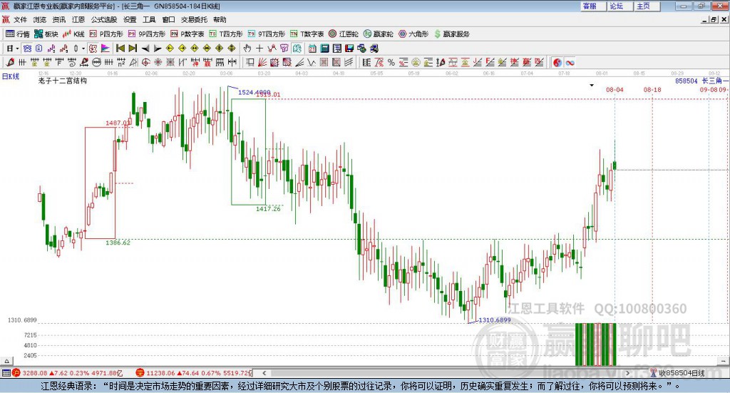 風(fēng)險提示:本頁面利用《贏家江恩軟件》《贏家十二宮軟件》系列工具客觀數(shù)據(jù)進(jìn)行數(shù)據(jù)模型運(yùn)算,系軟件圖表語言,由此得出的相關(guān)結(jié)論,不供參考,不構(gòu)成任何投資建議。贏家財富網(wǎng)版權(quán)所有,轉(zhuǎn)載請注明出處。
