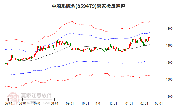目前K線以上影小陽線收盤,收盤價1540.07,概念自1月30日低點1418.66展開上攻,持續(xù)10日,抵達強勢通道線1582.6527點壓力位附近受阻,如能有效突破強勢通道線,則有望繼續(xù)上攻強勢外軌線1711.0393點,若不能突破則將回探生命線1434.098點附近尋找支撐。極反通道規(guī)則顯示,一線受阻,回調(diào)一線。