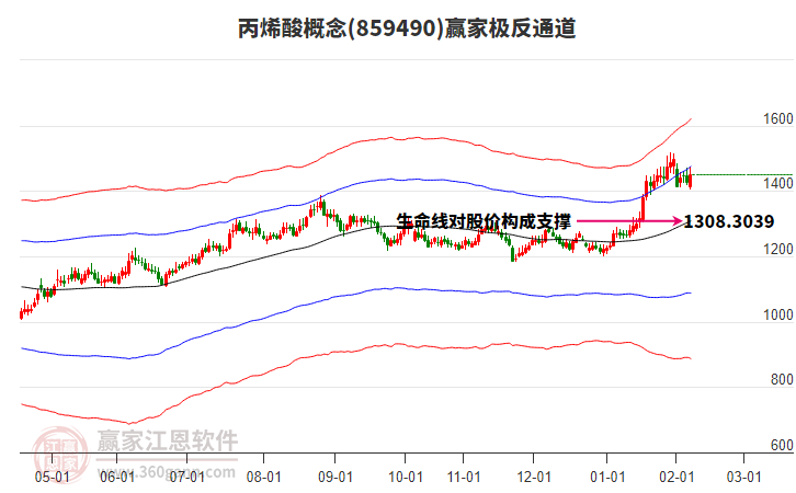 目前K線以上影中陰線收盤,收盤價1421.98,概念自2月6日低點1403.26展開上攻,持續(xù)5日,抵達強勢通道線1499.22點壓力位附近受阻,如能有效突破強勢通道線,則有望繼續(xù)上攻強勢外軌線1647.6901點,若不能突破則將回探生命線1328.8424點附近尋找支撐。極反通道規(guī)則顯示,一線受阻,回調一線。