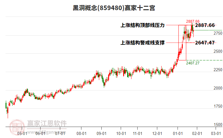 概念自近期高點(diǎn)2916.74跌至今日2723.72點(diǎn),共下跌193.02點(diǎn),跌幅7.09%,當(dāng)前概念處于2026年1月15日形成的上漲結(jié)構(gòu)頂部線與警戒線之間。依據(jù)贏家十二宮多空能量守恒規(guī)則,若多方能量再度聚集發(fā)力上攻,有望再度上攻關(guān)注結(jié)構(gòu)頂部線2887.66點(diǎn)尋找平衡位;若跌破警戒線,空方繼續(xù)主導(dǎo),則將進(jìn)一步下探結(jié)構(gòu)底部線2407.27點(diǎn)尋找平衡位。
