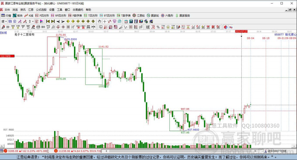 風(fēng)險提示:本頁面利用《贏家江恩軟件》《贏家十二宮軟件》系列工具客觀數(shù)據(jù)進(jìn)行數(shù)據(jù)模型運(yùn)算,系軟件圖表語言,由此得出的相關(guān)結(jié)論,不供參考,不構(gòu)成任何投資建議。贏家財(cái)富網(wǎng)版權(quán)所有,轉(zhuǎn)載請注明出處。