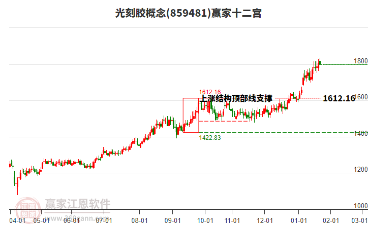 當前處于85天前形成的贏家十二宮上漲結構頂部線1612.16點上方,目前此位置由前方高點1月22日下跌至今日,跌幅6.75%。依據(jù)贏家十二宮結構規(guī)則,若跌破頂部線,多方能量持續(xù)衰減,上漲動能不足,空方能量占據(jù)主導,向下警戒線1485.34點尋找多空能量平衡位。