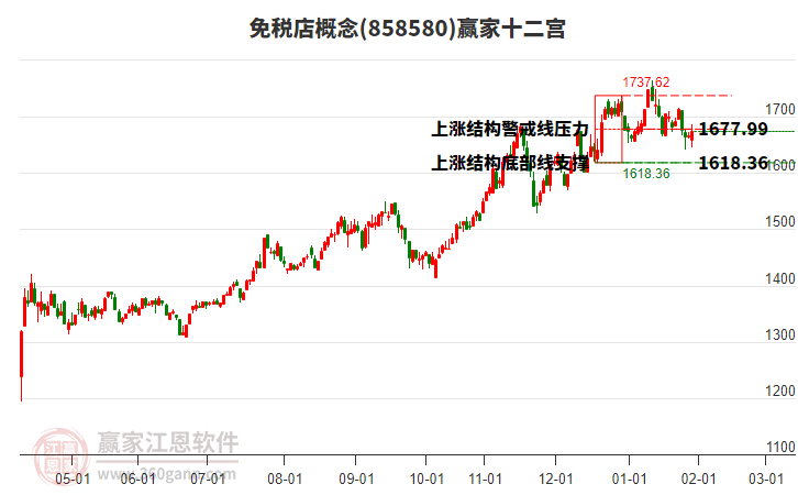 目前概念處在2025年12月29日形成的上漲結(jié)構(gòu)底部線與警戒線之間,今日概念跌幅達1.87%,目前處于底部線上方。依據(jù)贏家十二宮多空能量守恒規(guī)則,上漲結(jié)構(gòu)底部線位置是多空能量轉(zhuǎn)換的一個關(guān)鍵位置。如底部線1618.36點支撐不破,由多方能量主導(dǎo)上攻,在警戒線1677.99點尋找多空能量平衡。如跌破底部線,空方動能占據(jù)主導(dǎo),打開新的下跌空間。