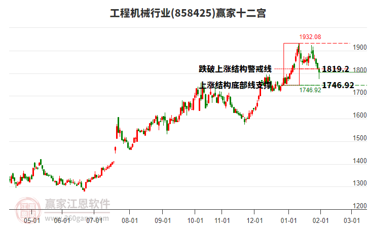 今日行業(yè)處在2026年1月13日形成的上漲結(jié)構(gòu)底部線與警戒線之間,今日行業(yè)大跌2.16%,目前處于底部線上方。依據(jù)贏家十二宮多空能量守恒規(guī)則,上漲結(jié)構(gòu)底部線位置是多空能量轉(zhuǎn)換的一個關(guān)鍵位置。如底部線1746.92點支撐不破,由多方能量主導上攻,在警戒線1819.2點尋找多空能量平衡。如跌破底部線,空方動能占據(jù)主導,打開新的下跌空間。