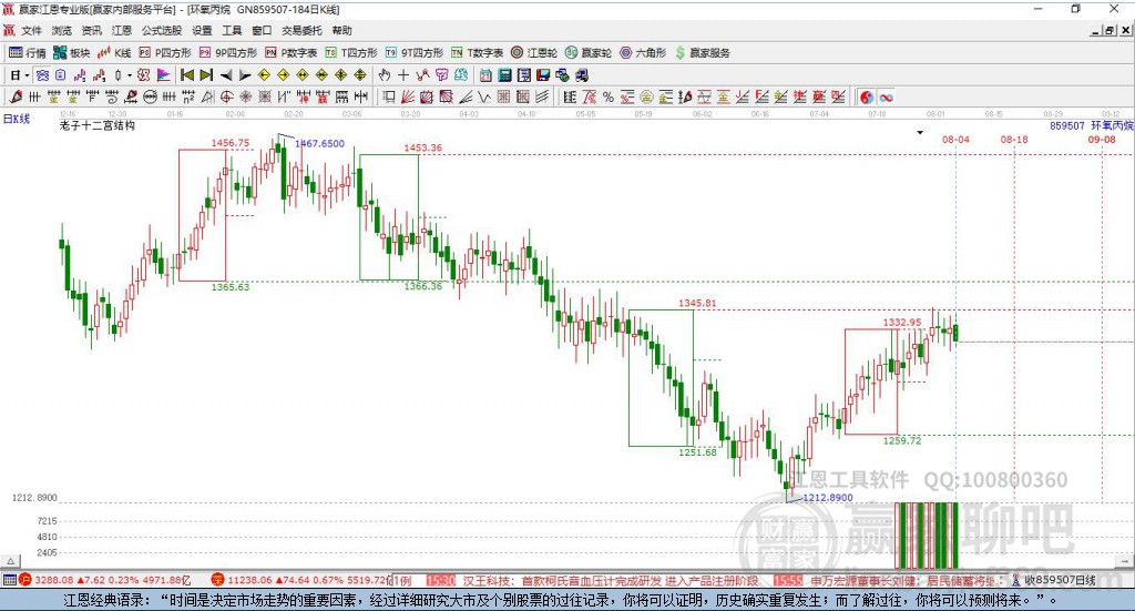 風(fēng)險提示:本頁面利用《贏家江恩軟件》《贏家十二宮軟件》系列工具客觀數(shù)據(jù)進(jìn)行數(shù)據(jù)模型運(yùn)算,系軟件圖表語言,由此得出的相關(guān)結(jié)論,不供參考,不構(gòu)成任何投資建議。贏家財富網(wǎng)版權(quán)所有,轉(zhuǎn)載請注明出處。