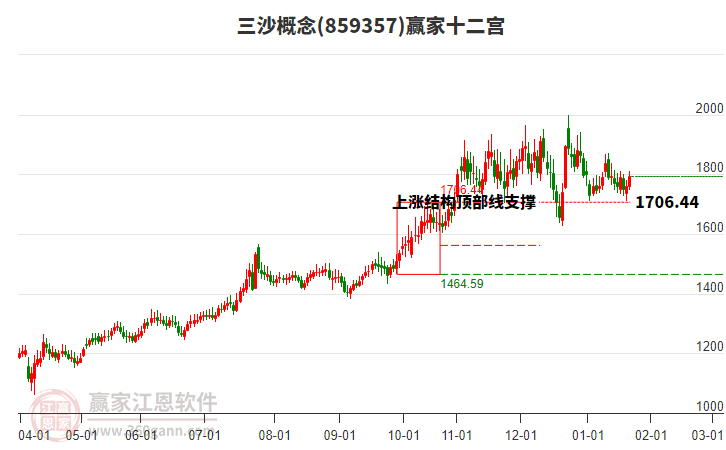 當(dāng)前處于68天前形成的贏(yíng)家十二宮上漲結(jié)構(gòu)頂部線(xiàn)1706.44點(diǎn)上方,目前此位置由前方低點(diǎn)1月21日上攻至今日,漲幅達(dá)5.32%。依據(jù)贏(yíng)家十二宮結(jié)構(gòu)規(guī)則,若跌破頂部線(xiàn),多方能量持續(xù)衰減,上漲動(dòng)能不足,空方能量占據(jù)主導(dǎo),向下警戒線(xiàn)1561.77點(diǎn)尋找多空能量平衡位。