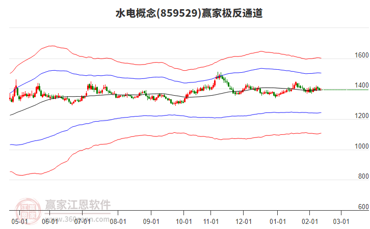 概念于2月6日高點(diǎn)1419.84,展開一波下跌,今日跌破生命線1390.4476點(diǎn),進(jìn)入弱勢通道, 依據(jù)極反通道規(guī)則,失守一線,看低一線,短期走弱,若此處不能收復(fù)生命線,則繼續(xù)下探至弱勢通道線附近尋找支撐。