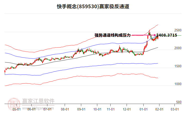 當(dāng)天K線(xiàn)以上影小陰線(xiàn)收盤(pán),收盤(pán)價(jià)2358.96,概念自1月21日低點(diǎn)2235.54展開(kāi)上攻,持續(xù)8日,抵達(dá)強(qiáng)勢(shì)通道線(xiàn)2431.2352點(diǎn)壓力位附近受阻,如能有效突破強(qiáng)勢(shì)通道線(xiàn),將打開(kāi)上行空間,進(jìn)入超強(qiáng)通道,若不能突破則將回探生命線(xiàn)2081.7547點(diǎn)附近尋找支撐。極反通道規(guī)則顯示,一線(xiàn)受阻,回調(diào)一線(xiàn)。