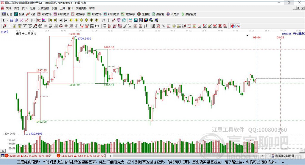風險提示:本頁面利用《贏家江恩軟件》《贏家十二宮軟件》系列工具客觀數(shù)據(jù)進行數(shù)據(jù)模型運算,系軟件圖表語言,由此得出的相關(guān)結(jié)論,不供參考,不構(gòu)成任何投資建議。贏家財富網(wǎng)版權(quán)所有,轉(zhuǎn)載請注明出處。