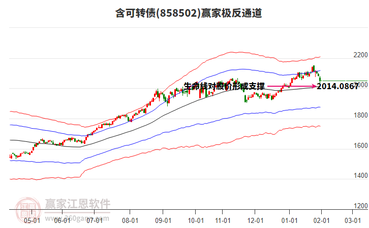 概念于1月26日高點(diǎn)2152.36,展開一波下跌,今日跌破生命線2016.2298點(diǎn),進(jìn)入弱勢(shì)通道, 依據(jù)極反通道規(guī)則,失守一線,看低一線,短期走弱,若此處不能收復(fù)生命線,則繼續(xù)下探至弱勢(shì)通道線附近尋找支撐。