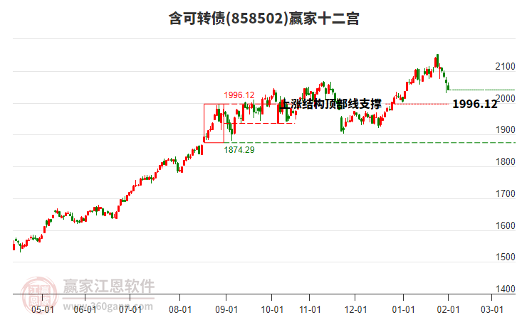 當(dāng)前處于103天前形成的贏家十二宮上漲結(jié)構(gòu)頂部線1996.12點(diǎn)上方,目前此位置由前方高點(diǎn)1月26日下跌至今日,跌幅7.08%。依據(jù)贏家十二宮結(jié)構(gòu)規(guī)則,若跌破頂部線,多方能量持續(xù)衰減,上漲動(dòng)能不足,空方能量占據(jù)主導(dǎo),向下警戒線1935.2點(diǎn)尋找多空能量平衡位。