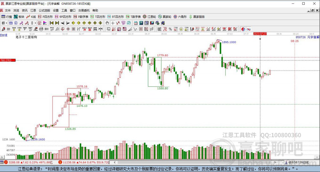 依據(jù)贏家江恩趨勢(shì)工具技術(shù)分析得出,目前處于短線下跌趨勢(shì)中, 依據(jù)贏家江恩價(jià)格工具得出:當(dāng)前支撐位:,當(dāng)前阻力位:,由贏家江恩時(shí)間周期工具展示得出:下一個(gè)時(shí)間窗口為。