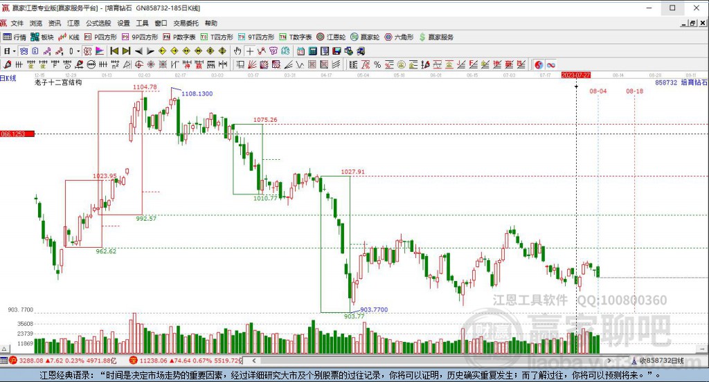 風(fēng)險(xiǎn)提示:本頁面利用《贏家江恩軟件》《贏家十二宮軟件》系列工具客觀數(shù)據(jù)進(jìn)行數(shù)據(jù)模型運(yùn)算,系軟件圖表語言,由此得出的相關(guān)結(jié)論,不供參考,不構(gòu)成任何投資建議。贏家財(cái)富網(wǎng)版權(quán)所有,轉(zhuǎn)載請(qǐng)注明出處。