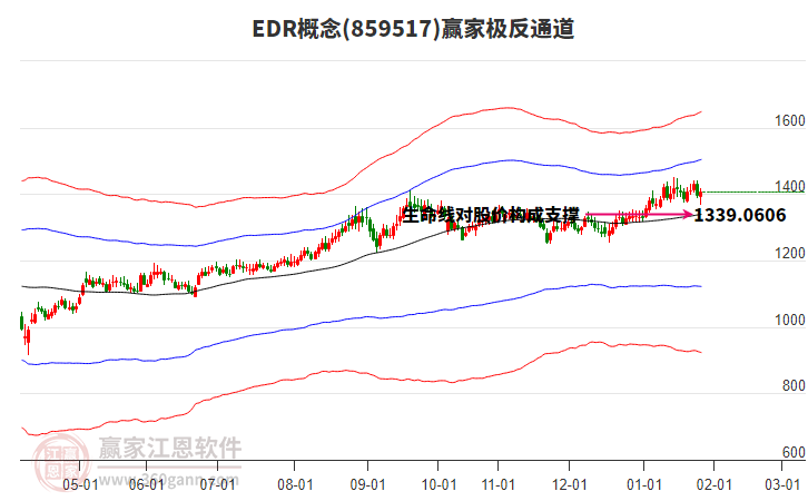 概念于1月15日高點1450.7,展開一波下跌,今日跌破生命線1344.5526點,進(jìn)入弱勢通道, 依據(jù)極反通道規(guī)則,失守一線,看低一線,短期走弱,若此處不能收復(fù)生命線,則繼續(xù)下探至弱勢通道線附近尋找支撐。