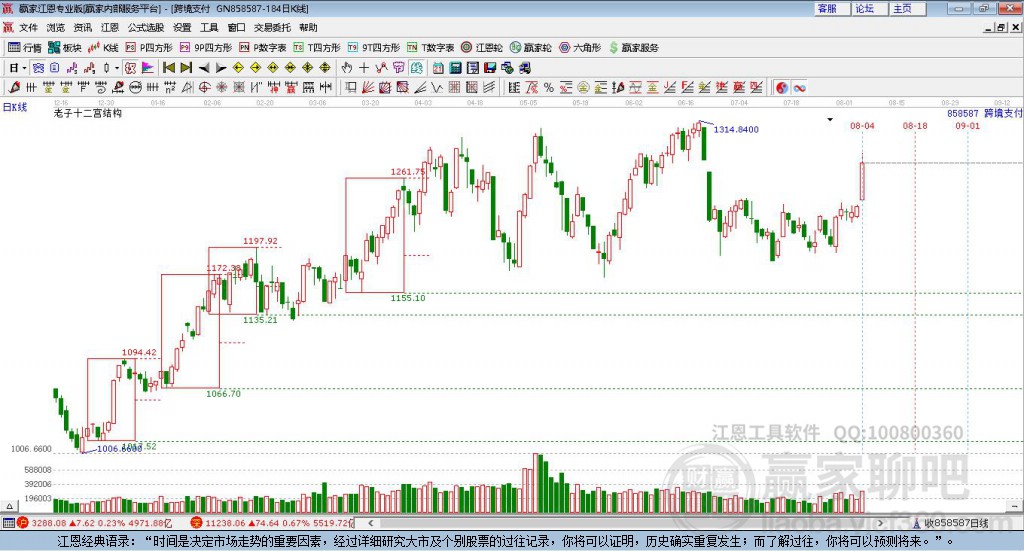 風(fēng)險提示:本頁面利用《贏家江恩軟件》《贏家十二宮軟件》系列工具客觀數(shù)據(jù)進(jìn)行數(shù)據(jù)模型運(yùn)算,系軟件圖表語言,由此得出的相關(guān)結(jié)論,不供參考,不構(gòu)成任何投資建議。贏家財富網(wǎng)版權(quán)所有,轉(zhuǎn)載請注明出處。