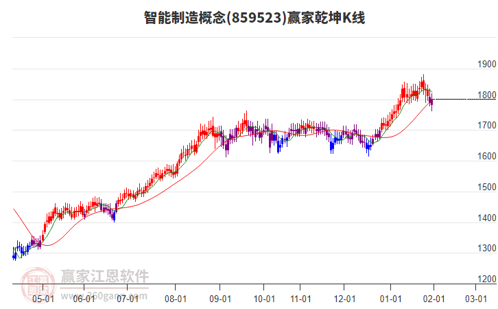 概念自近期高點(diǎn)1882.27跌至今日1777.6點(diǎn),共下跌104.67點(diǎn),跌幅5.89%,當(dāng)前概念處于2026年1月13日形成的上漲結(jié)構(gòu)頂部線與警戒線之間。依據(jù)贏家十二宮多空能量守恒規(guī)則,若多方能量再度聚集發(fā)力上攻,有望再度上攻關(guān)注結(jié)構(gòu)頂部線1857.2點(diǎn)尋找平衡位;若跌破警戒線,空方繼續(xù)主導(dǎo),則將進(jìn)一步下探結(jié)構(gòu)底部線1648.52點(diǎn)尋找平衡位。