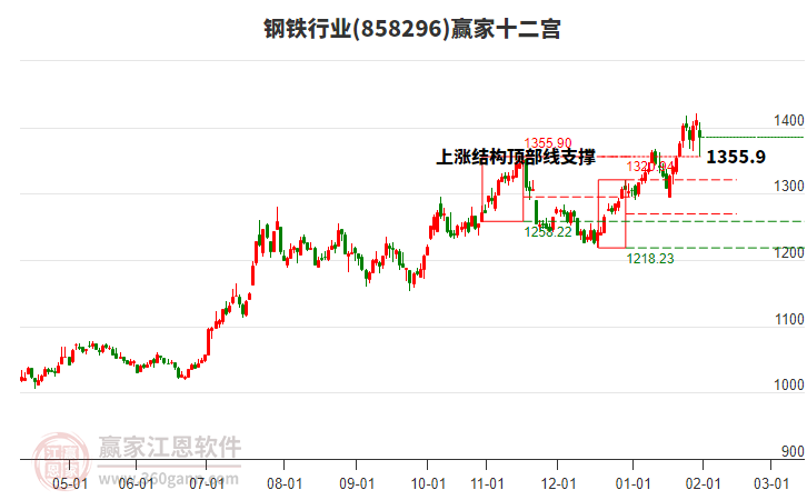 當(dāng)天行業(yè)跌破上漲結(jié)構(gòu)頂部線1320.94點,行業(yè)自前方高點1月29日1420.75點持續(xù)下跌2日跌幅8.77%,依據(jù)贏家十二宮結(jié)構(gòu)規(guī)則,上漲結(jié)構(gòu)突破頂部線后再次跌落至頂部線,多空能量再次在頂部線尋找平衡。若確認跌破頂部線,出現(xiàn)空方能量守恒狀態(tài),向下警戒線1269.59點尋找多空能量平衡位。