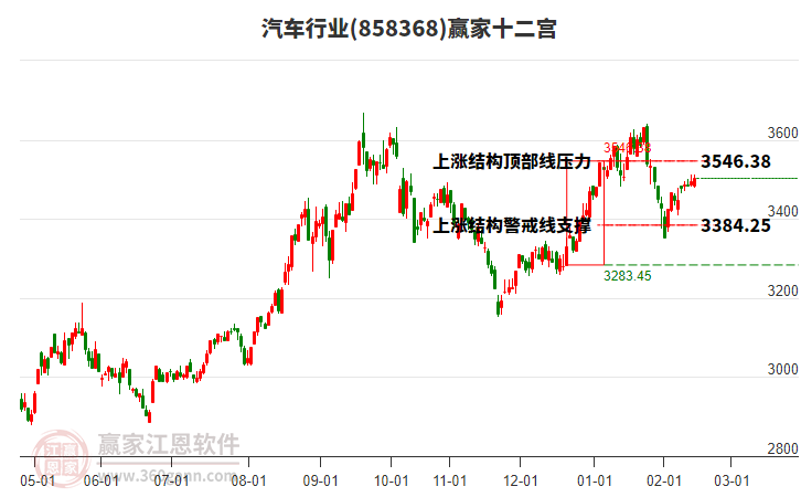 當天行業(yè)跌幅0.33%,目前受到27日前形成的上漲結構頂部線3546.38點壓制,本輪自前方低點2月2日3351.68點,上漲至今日已持續(xù)9日,多方能量得到釋放,空方能量逐漸增強。依據(jù)贏家十二宮結構規(guī)則,行業(yè)若不能有效突破站穩(wěn)上漲結構頂部線,多方能量逐漸衰竭,空方能量逐漸主導,向下方警戒線3384.25點附近尋找新的平衡位。若向上突破站穩(wěn)頂部線3546.38,有望突破前期形成的高點。