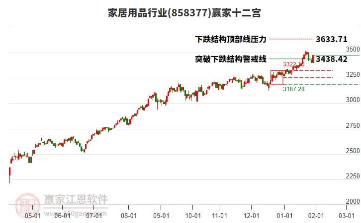 當(dāng)前處于22天前形成的贏家十二宮上漲結(jié)構(gòu)頂部線3322.3點上方,目前此位置由前方低點1月27日上攻至今日,漲幅達(dá)0.44%。依據(jù)贏家十二宮結(jié)構(gòu)規(guī)則,若跌破頂部線,多方能量持續(xù)衰減,上漲動能不足,空方能量占據(jù)主導(dǎo),向下警戒線3254.79點尋找多空能量平衡位。