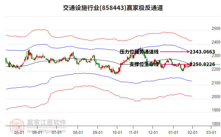 行業(yè)于1月30日高點(diǎn)2278.3,展開(kāi)一波下跌,今日跌破生命線2250.2305點(diǎn),進(jìn)入弱勢(shì)通道, 依據(jù)極反通道規(guī)則,失守一線,看低一線,短期走弱,若此處不能收復(fù)生命線,則繼續(xù)下探至弱勢(shì)通道線附近尋找支撐。
