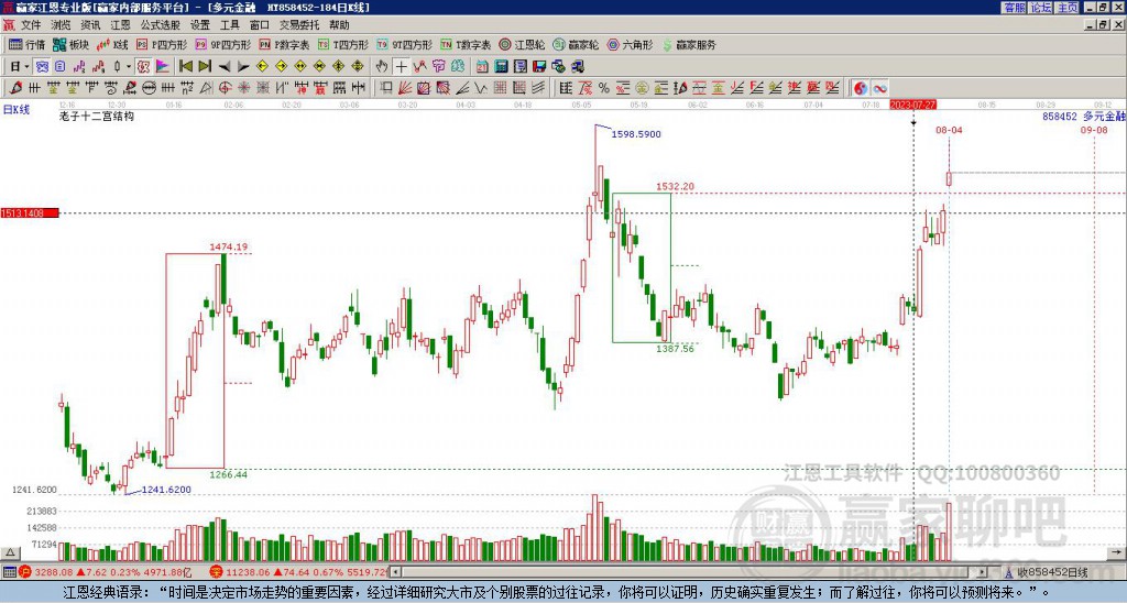 風(fēng)險(xiǎn)提示:本頁面利用《贏家江恩軟件》《贏家十二宮軟件》系列工具客觀數(shù)據(jù)進(jìn)行數(shù)據(jù)模型運(yùn)算,系軟件圖表語言,由此得出的相關(guān)結(jié)論,不供參考,不構(gòu)成任何投資建議。贏家財(cái)富網(wǎng)版權(quán)所有,轉(zhuǎn)載請注明出處。