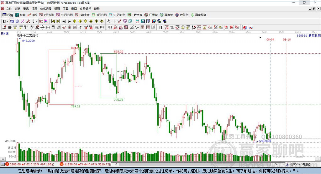 風(fēng)險提示:本頁面利用《贏家江恩軟件》《贏家十二宮軟件》系列工具客觀數(shù)據(jù)進(jìn)行數(shù)據(jù)模型運(yùn)算,系軟件圖表語言,由此得出的相關(guān)結(jié)論,不供參考,不構(gòu)成任何投資建議。贏家財富網(wǎng)版權(quán)所有,轉(zhuǎn)載請注明出處。