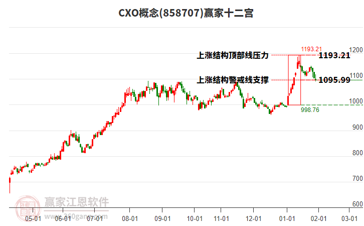 今日概念處在2026年1月15日形成的上漲結(jié)構(gòu)底部線與警戒線之間,今日概念大漲2.5%,目前處于底部線上方。依據(jù)贏家十二宮多空能量守恒規(guī)則,上漲結(jié)構(gòu)底部線位置是多空能量轉(zhuǎn)換的一個(gè)關(guān)鍵位置。如底部線998.76點(diǎn)支撐不破,由多方能量主導(dǎo)上攻,在警戒線1095.99點(diǎn)尋找多空能量平衡。如跌破底部線,空方動(dòng)能占據(jù)主導(dǎo),打開新的下跌空間。